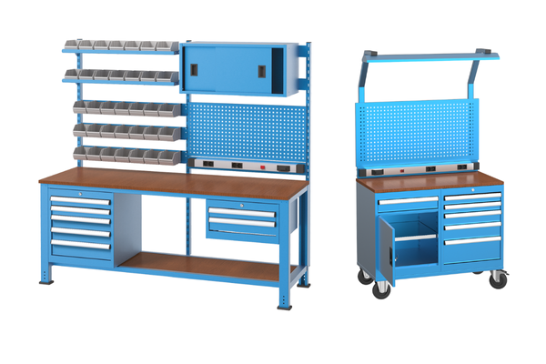 - Atölye ve endüstriyel işler için sağlam, geniş yüzeyli, ağır yüke dayanıklı masalar